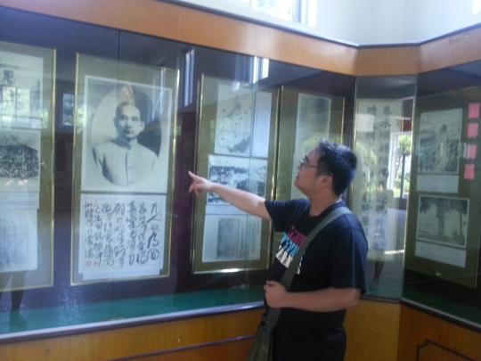 展厅里介绍了黄乃裳前辈的生平,以及一些字画资料。两位同学仔细参观阅读他的生平。黄乃裳,闽清县人。福建著名的华侨领袖、民主革命家。他的一生都在为国家奔走。是近代中国民主革命的坚强斗士,他为民主革命呕心沥血,贡献了毕生精力。在他身上不仅体现了爱国爱乡,同时还体现了海纳百川,黄乃裳前辈曾远渡重洋,学习西方先进的思想文化,也创办多份报纸,希望能够让更多的国人觉醒。这些事迹深深的留在两位同学的心中。