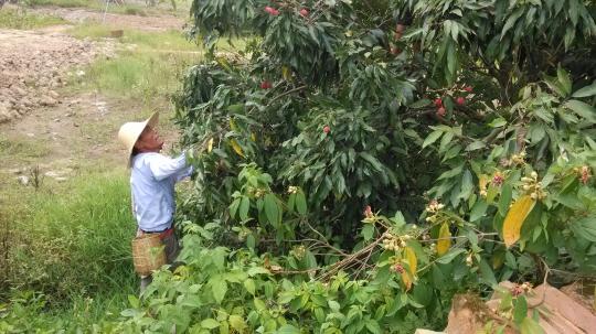 早上8点左右,小组一行人到达岐安村,带着昂扬的兴致,准备投入到新一天的活动中去。荔枝是夏季的时令水果,广受大众喜爱,其市场颇为走俏。同学们本次任务正是到果园中去帮助果农采摘荔枝。俗话说,没吃过猪肉还没见过猪跑,但是同学们却吃过荔枝,没见过摘荔枝。因此,在队长的带领下,小组一行人便来到一户果农的家中进行拜访。经过一番的交谈,同学们不但大体了解果农的生活有,更学习了认识、辨别荔枝好坏的方法。比如,肉肥核小的荔枝,一般在枝尖;那些发圆的荔枝大多是肉少核大,而好的荔枝则一般都是紧而又有弹性的等等。了解完这些基础信息后,同学们开始进入果园忙活起来。起初,大家还不太熟练,时常采摘到次等的荔枝,经过果农现场指导几番后,同学们逐渐得心应手,半个多小时之后,不少同学的采摘速度已经和果农有的一比了。有的同学为了够到枝头的荔枝,甚至使出绝招——爬树,笨拙的动作引得大伙大笑,减缓了烈日下劳作带来的辛苦。一直到下午四点,“绿团”小组一行人才告别过果农,启程返校。