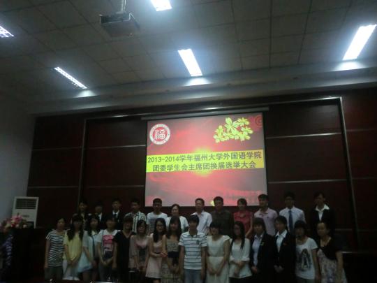 5月31日晚6点半,外国语学院学生委员会主席团换届竞聘演说环节选举在院办会议室隆重举行。外国语学院党委副书记刘旺、团委书记周越、11级辅导员刘燕老师以及现任主席团成员出席大会并担任评委。本次主席团换届共有赵颖芳、谢良焰、章彩玲、李学等7位11级同学参加竞选。