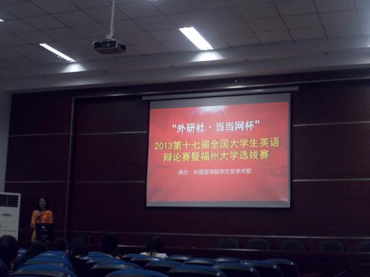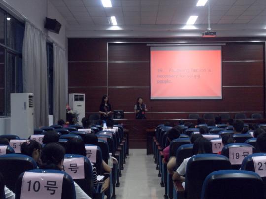 此次比赛邀请到李建新,陈丽娟,成琳担任评委。首先,由主持人介绍此次辩论赛的比赛规则。此次比赛由两人组成一支参赛队伍报名参赛,初赛采取即兴英语演讲的方式,每位选手在比赛前抽题并准备,演讲时间为2 分钟,每支队伍自行决定正反方,按队伍顺序进行辩论演讲,正反两方先后陈述观点,由评委给分。在所有选手演讲完毕后,取两名选手总分作为团队得分,按分数 高低,选出前7队,剩下一队由个人成绩在前16名但所在队未能进入前7的参赛选手组成第8队。比赛开始前,选手们为了能在台上表现的更加出色而积极准备 着,同时在比赛中认真学习他人的优点,完善自身。此次比赛考验的不仅是选手们的英语表达能力,更考验选手们的临场发挥和语言组织能力,对每位选手都是一次 很好的考验和锻炼。在赛场上选手不但仔细聆听对手发言,也积极寻找突破口表达自己的观点,信心满满地侃侃而谈,充分展现了当代大学生的风采。最终,共有八 位选手晋级到决赛。在决赛前,他们将得到专业指导英国BP辩论制的付磊老师的指导和培训。