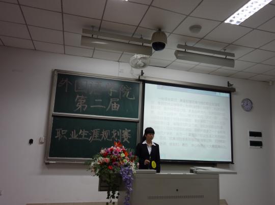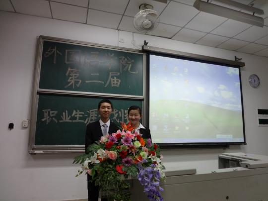 为庆祝建校五十五周年,响应党的十八大的号召,进一步提高外国语学院学生的就业竞争力,4月11日,由外国语学院职业发展部主办的“职场达人秀”之职业生涯规划大赛在文1-404顺利举行。辅导员刘文婷老师、黄柑莲老师,就业指导中心赵艳莉老师作为评委出席此次比赛,学生会主席团成员及各部门部长作为嘉宾参与本次比赛。
