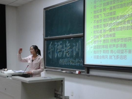 为提高基础手语的普及率,更好地与聋哑人交流,关心聋哑人,4月19日晚7时,外国语学院红十字会在文1-105举办了手语培训。此次培训邀请到了校红十字会的蒋京瑛、陈久易同学,向外国语学院的同学们教授了简单的手语基本用语并展示了手语歌曲。