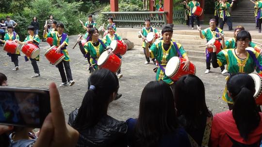 外国语学院同学参与的太鼓表演极其热烈豪放,将活动推向了高潮。在活动的最后,全员合影留恋,并共同分享了美味地道的日式点心,气氛可谓其乐融融。相信这温馨的一幕,无论在中方还是日方心中,都留下了美好回忆。