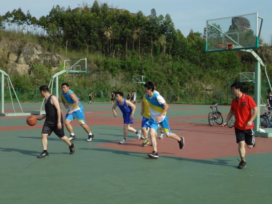 5月2日下午3时30分许,外国语学院教职工男子篮球队与外国语学院学生男子篮球队在三区篮球场举行了一场友谊赛。外国语学院党委副书记刘旺、团委书记周越等教师参与其中。