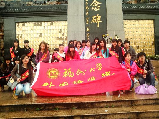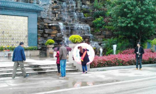 4月6日上午10点各班党积已经到达陵园的见义勇为广场,等待活动的开始。在与烈士陵园集团总经理林总商议好整个活动的流程后,祭扫活动正式开始。首先,党建学习部蓝晓燕同学致开幕辞,向大家说明此次活动的意义,其次是学生代表曾艳莲致辞,代表广大学生表达对烈士们的哀思和崇敬。接着,林总与学生代表一起进献花圈,而党积们也手执鲜花向烈士照片墙献花。伴着广场上奏起的哀乐,大家沉重地低头默哀3分钟以表示对亡魂的悼念。接着,大家怀着崇高的敬意参观烈士陵园。