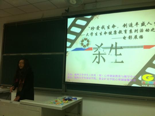 学生工作部心理健康教育与辅导中心主办,外国语学院和紫金矿业学院联合承办的“珍爱我生命,创造丰富人生”心理电影展在文2—104举办。