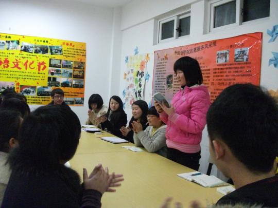 3月4日晚,为纪念学习雷锋活动五十周年,并响应学校社会的学雷锋活动号召,由外国语学院青年志愿者协会主办的学习雷锋精神座谈会在生活区13号楼5楼活动室顺利开展。本次座谈会由外院青年志愿者协会会长张冶主持,外院学生会主席黄玉洁、团委副书记郭馨以及各个学生代表出席此次座谈会。