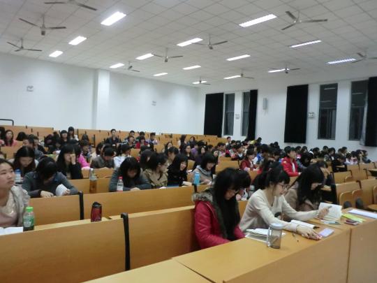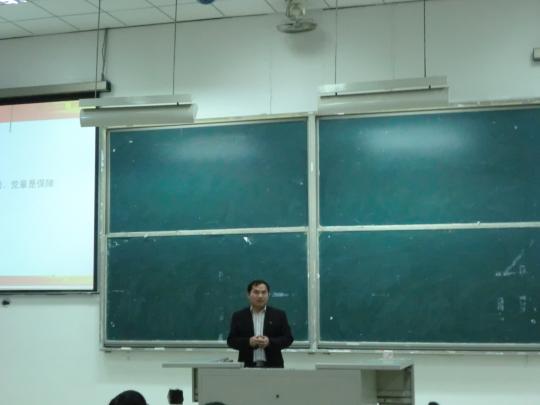 在整个授课过程中,傅茂松老师旁征博引,从党章的四个体系,深入引导同学们学习报告和党章的内容,学习和贯彻党的十八大精神,向同学们讲解关于听取和审查中央委员会的报告、听取和审查中央纪律委员会的报告、修改党的章程、讨论并决定党的重大问题、选举中央委员会、选举中央纪律委员会等重要理论知识。另外,老师认为在报告和党章的学习方面,同学们一要将两者结合起来学习,报告是根据,党章是保证;二要原原本本学好党章。尤其针对大学生思想入党的问题,他谈到,“许多大学生在组织上入了党,在思想却没有完全入党,甚至没有入党”,这让同学们深刻意识到思想入党的紧迫性和重要性,端正入党动机,坚持共产主义理想信念。整个会场学习氛围浓厚:同学们表现出积极的求知精神和认真的学习态度,详细记录授课要点,并且主动探究知识疑点、难点。