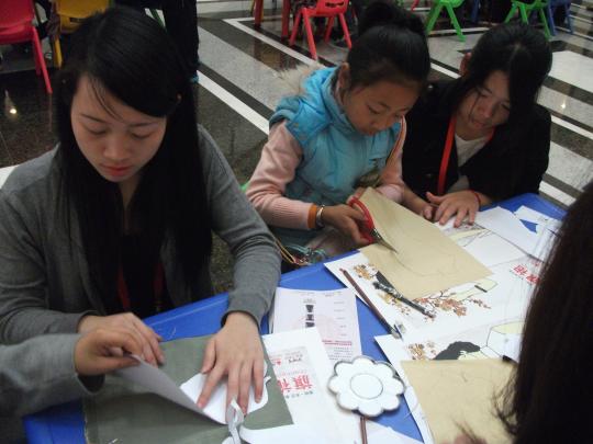 3名志愿者来到福建省博物院,为这次的省博社教活动提供志愿服务。上午8时,青协的志愿者赶到省博物馆,帮助博物馆的工作人员进行活动前期的材料准备、场地布置和人员安排等相关事宜。在博物馆工作人员和青协志愿者的精心准备下,以在小学生中推广中华百年旗袍文化为主题的旗袍布艺拼贴活动正式开始。