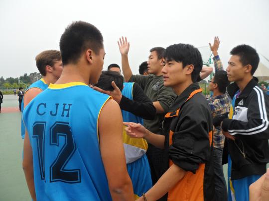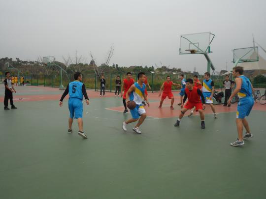 组的第一场对决。经过赛前系统的热身之后,随着裁判的一声哨响,两队开始了较量。一开始双方都略有些紧张,动作场伴随着些许失误,两队大二大三的学长们也在一旁进行技术指导,很快双方就进入了状态。管理学院率先发力,加大了进攻,开始连续得分,外院也不甘示弱,以积极的跑动弥补技术上的不足,比分紧咬着管院的分数上升。比赛就进行到一半时,外院以一记漂亮的三分球赢得观众的喝彩,啦啦队也适时鼓掌呐喊,现场气氛热烈。随后管院展开强有力的进攻,以精确的投篮准度与有效的抢球一度拉开比分,外院队员根据场边学长们的指导进行反攻,队员间也相互鼓励,逐渐缩小了差距。最终外院不敌实力强劲的管院,未能赢下小组首战,但队员们也从中收获了比赛经验,认识到自身的不足,为接下来的比赛做了准备。