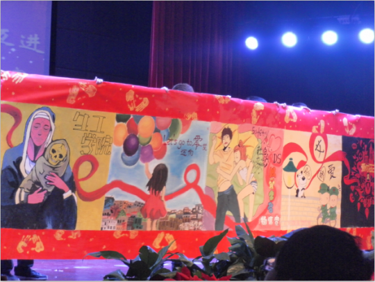 首先,校团委书记黄阿火老师上台致辞,接着比赛正式开始。此次决赛共有八个学院参与到角逐中,每个学院的话剧表演风格迥异,带给观众一场视觉与心灵的震撼。其中管理学院带来的节目《爱是我唯一的秘密》,演绎了艾滋病患者情感道路上的曲折,感动了场下许多观众;建筑学院带来的《防艾甄嬛传》则以将防艾这一主题与时下最热(热门)的电视剧《甄嬛传》相结合,讲述了后宫由妃子争斗引起的艾滋风波改变了皇帝及人们对艾滋病的态度,博得台下掌声不断。外国语学院带来的《不能说的秘密》,讲述了一位艾滋咨询师搬到新公寓后,为替一位患者保密被邻居误会患有艾滋病并遭到驱逐,但最终患者勇敢站出来澄清,邻居也认识到错误的感人故事。这出话剧轻松幽默,笑料百出,但也不乏温情的片段,其中病人内心的挣扎更发人深省。话剧中更以幽默的方式穿插介绍了艾滋病传播的三种途径,普及了防艾知识。同时演员们的表演张弛有度,收放自如,引来台下阵阵掌声。话剧表演结束后,工作人员展出了各个学院共同创作的百米画卷。每个学院的作品都颇具新意,但都共同表达了“向零艾滋迈进”的美好愿望。