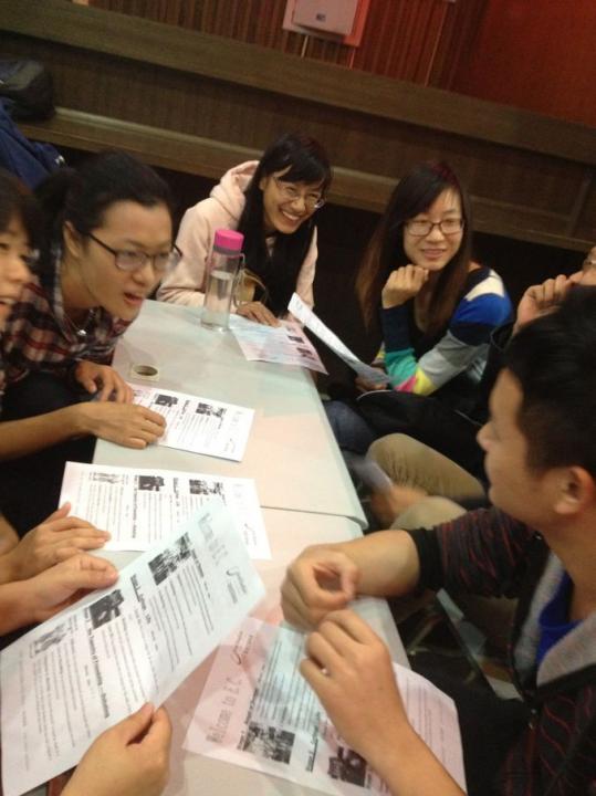 活动伊始,读书吧内已座无虚席,过道上也站满了口语爱好者,现场讨论气氛热烈融恰,学术氛围十分浓厚。本次英语角的讨论主题共分为三个模块,既紧跟社会动态,又贴近实际生活。模块一为Angel or Demon,参与者们针对网上热议的二十岁幼儿教师虐童事件展开讨论,各抒己见,畅所欲言;第二模块则是为大学生量身设定的College Life,其中Love Life版块更是引起同学们极大的讨论,大家纷纷踊跃分享大学生活所经历的爱和感动。在第三个模块the Tapestry of Friendship----Debating中,大家就友谊的不同类型,爱和友谊的认知及逆境中的伙伴,积极发表自己的看法和感想。本次英语角还邀请两名本校外教和两位来自福建医科大学的留学生担任嘉宾,他们亲切地同大家分享自己的经历,将现场讨论气氛推向又一个高潮。值得一提的是,参与本次活动的不但有来自各校的本科生和研究生,更不乏有来自社会的英语口语热爱者,这使得参与者的交流面得到更为广阔的拓展。