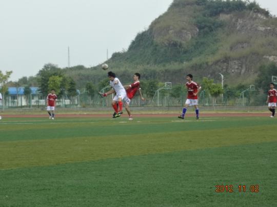 11月2日12时15分, 备受期待的外国语学院与生物工程学院的足球赛在三区足球场正式开赛。现场不仅有热情的啦啦队为球员们助阵,更有外国语学院团委书记周越和胡昊老师到现场为球员加油助威。
