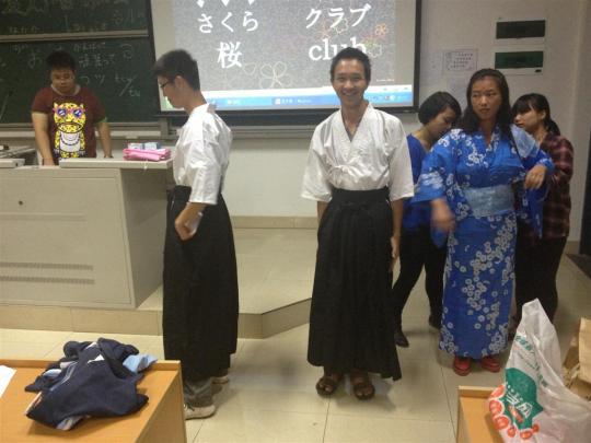 本次活动主要内容包括简单的日本语教学、日语相关的小游戏和和服和剑道服的试穿三个方面。