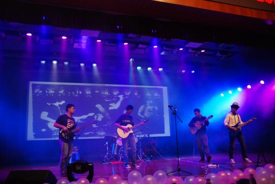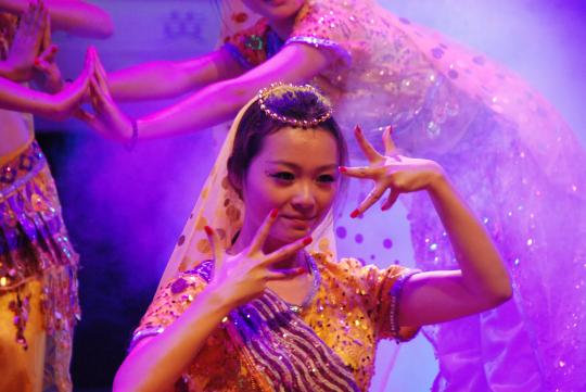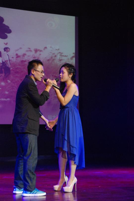 其中,外国语学院带来的表演也是异彩纷呈,彰显了学院的别样特色。学院精心编排的印度舞蹈极具异域风情,惊艳全场,赢得满堂喝彩。而在随后的日语歌曲《alone》、德语歌曲《我仍然如此爱你》和英语歌曲《run devil run》串烧中,外院同学们凭借着出色的唱功及精彩的舞台表现将晚会推向另一个高潮。热辣现代的爵士舞《Get Sexy》及当红神曲《江南Style》的舞蹈表演以其强烈的节奏韵律刺激现场每一个观众的神经,让观众们在热浪当中感受青春洋溢的韵律。最后,晚会在互动歌曲《红日》中圆满落幕。值得一提的是本次晚会中独具匠心的互动环节,噱头不断,亮点层出,充分调动了场下观众的热情,晚会气氛十分火爆。
