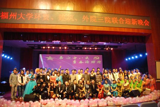 11月9日晚7时整,由外国语学院、环境与资源学院和建筑学院联合主办的以“放飞梦想,青春飞扬”为主题的2012年三院迎新晚会在图书馆博学厅隆重上演。出席此次晚会的嘉宾有外国语学院党委副书记刘旺以及团委书记周越、环境与资源学院党委副书记蔡剑英、建筑学院党委副书记张红等。此外,各学院领导、辅导员,还有校学生会及各兄弟院系的学生会代表亦莅临现场观看演出。