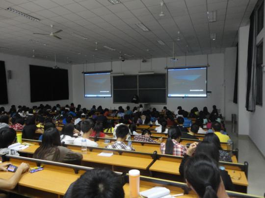 外国语学院心理健康服务部承办,外国语学院团委书记周越、辅导员刘燕老师作为指导老师出席了此次活动,来自各个学院的近两百位同学参加了此次活动,观众对此次活动满怀热情,现场座无虚席。为了提高活动的知晓度,外国语学院心理健康服务部利用海报宣传、电台宣传、网络宣传等做了充分的前期宣传,提高了同学们参与活动的积极性。