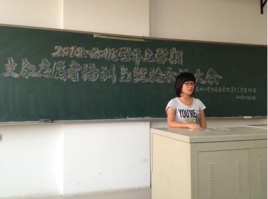10月21日下午3时,由外国语学院青年志愿者协会主办的“2012-2013学年上学期支教志愿者经验交流及培训大会”在西2-308举行。此次交流大会由青协副部长付露担任主持人,外院青协主要负责人及支教志愿者们出席了本次交流会。