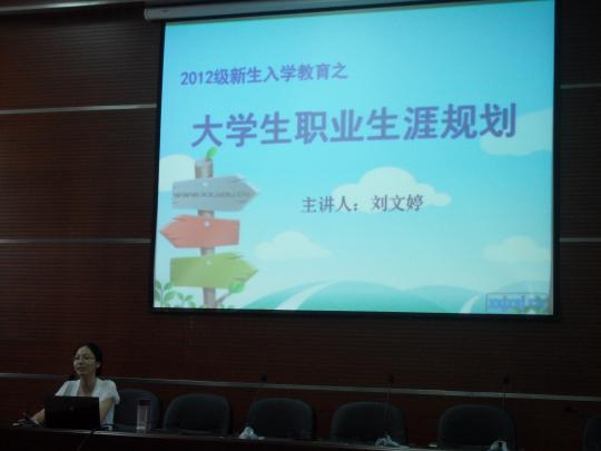 时许,第二项入学教育《大学生职业生涯规划》由辅导员刘文婷开讲。她首先阐明了当今就业形势的严峻,要求同学们在大一时就拥有一定的就业目标,并在大学四年里朝着既定目标不断努力,只有这样才不负大学四年的时光。