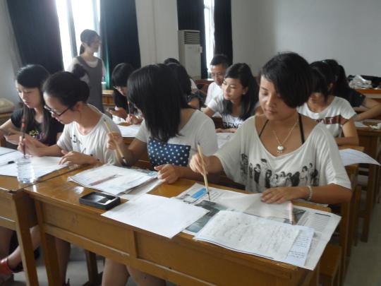 开展了日本文化祭之书道活动。该活动以教师授课的形式展开,来自日本的守屋久美子为学生介绍日本的书道。