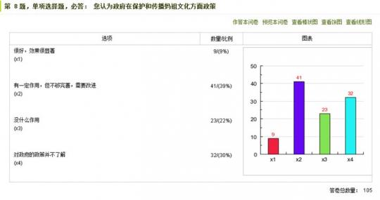 调查问卷的数据显示,近九成的受调查学生没有去过湄洲58%的学生认为妈祖文化与自己的生活基本没有相关性;57%的学生对妈祖及其他民俗文化不甚了解等。以上说明,