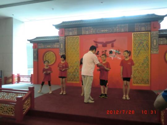 小时。每天,我们至少有三位志愿者协助老师带队,纠正小学员形体训练中出现的问题,协助老师一起完成展厅辅导。尤其是在社教活动中,每次均有八位志愿者参与其中,负责指导小学员完成任务以及活动过程中的引导和安全等任务。在志愿服务期间,实践队负责人积极与福建博物院沟通,招募拥有良好知识技能的志愿者,及时根据活动情况进行人员安排,为活动有序开展做出贡献,得到福建博物院宣教部工作人员的肯定。