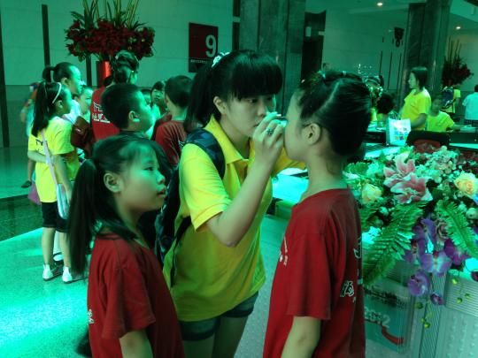 时,“我是小小讲解员——闽博小讲解员培训班”结业汇报演出在福建博物院成功举行。活动当天,外国语学院的的六位志愿者提早来到福建博物院,协助带队老师,为参加汇报演出的小学员们化妆,帮助学员们做好演出的各项准备。