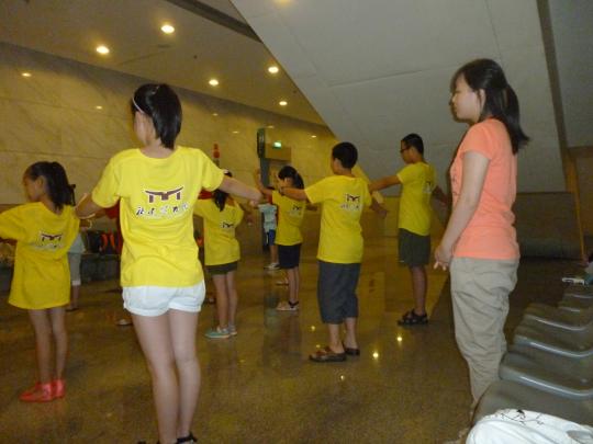 形体、发声训练,在老师的代领下,小学员们认真跟学、
