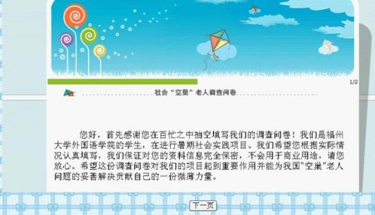 附:空巢老人问卷调查网址 //www.diaochapai.com/survey620592