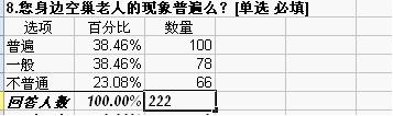 经过了一番严密的讨论,关爱空巢老人实践队通过前期问题收集、筛选、最终确定、网页编制,最终顺利完成这份网上问卷。随后,由小组负责人进行任务的分配,各成员明确任务,借助QQ群里、人人网、微博等各种途径开展热火朝天的问卷宣传。在全体小组成员的努力下,历经3天左右时间,完成200多份的填写量,并达到了300多人数的浏览量。