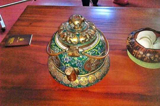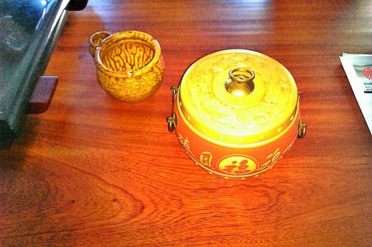 魏荫名茶的茶艺馆,这是一处非常精致的,非常有韵味的茶艺馆。在茶艺馆里,分有唐、宋、元、明、清、中华国韵、安溪茶都、西坪探源、松岩母树等展区,每个展区都各具特色。里面还有用于斗茶的规范斗茶室,听了讲解员对斗茶这一传统习俗的讲解,我们都有耳目一新的感觉,见识大增。在每个展区,我们都见到了别具一格的摆设品,代表着不同年代的茶艺文化。