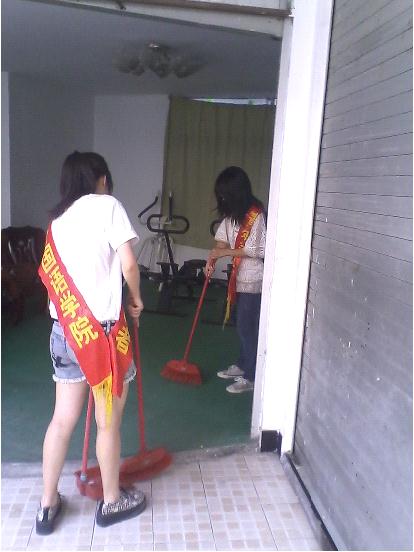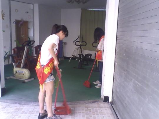 这批志愿者此次前行的目的是打扫敬老院活动室,为老人们提供一个温馨舒适的运动健身环境。除了扫地整理等工作,志愿者们还决定帮助老人们清洗体育健身器材。志愿者们个个都拿着抹布细心地进行擦洗工作。有的蹲在地上,举着抹布去擦洗跑步机下面的灰尘;有的俯身对着椅子一遍一遍地清洗;有的站在玻璃面前不住地呵气。尽管7月的闷热让志愿者们早已大汗淋漓,却依然削减不了同学们热火朝天的干劲。敬老院里老爷爷、老奶奶也一直张罗着让志愿者们坐下来休息。对于老人们络绎不绝的赞许声,有的志愿者脸上还露出了不好意思的笑容。