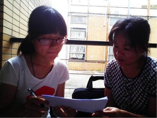 日语系教师,曾经还担任过贸易、翻译、经济师、中学一级教师。教学经验丰富的她,热情招待了前来采访的两名同学,并逐一为他们解答对于外语专业就业的疑惑。