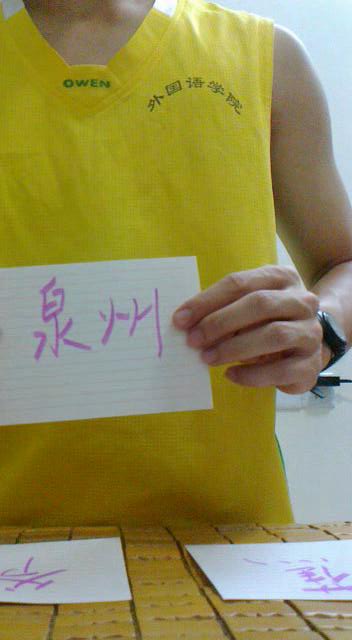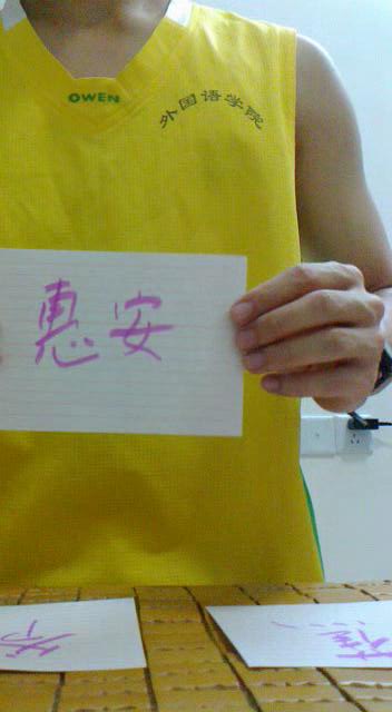 生活区九号楼活动室,与几位受约前来的晋江,南安,安溪和永春的学生进行了访谈。谈话内容涉及到闽南语在家庭成员间交流中的使用情况、父母在教育子女时使用闽南语的情况、以及他们现在对闽南语发展前景的态度。受访者表示对闽南语有着很深的情感,对闽南语的发展前景充满信心,并且希望闽南语能够得到传承。最后让她们用自己的家乡话来讲“火锅,知了,螳螂,香蕉”等词语。研究不同地方发音的不同点。实践组工作人员根据访谈结果进行了整理,并把这些发音都录下来,最后进行了整理归纳并录制成视频。
