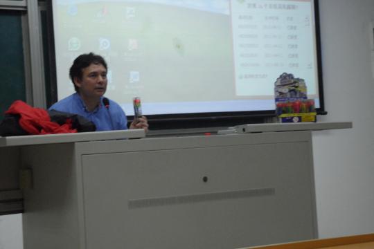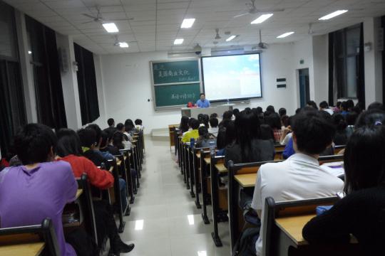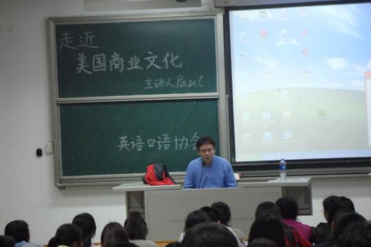 4 月13日 晚7点,由校英语口语协会举办的四月份Elite Program的第二期讲座“与外教Paul一起走进美国商业文化”在文1-205举行。