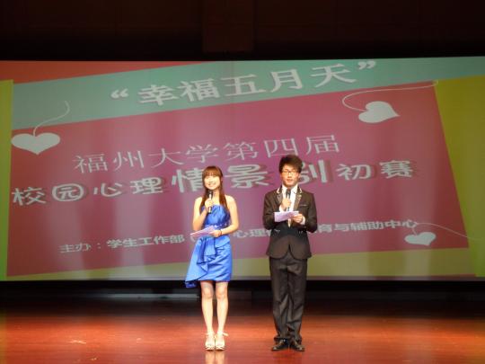 第四届心理情景剧预赛(第一场)在图书馆博学厅举行。此次大赛的主办单位是学生工作部(处)心理健康教育与辅导中心,承办单位是物信学院心理健康教育中心,协办单位有物信学院团委学生会心理部、宣传部、记者团,物信学院11级信息工程1班、微电子2班及光电班等。大赛还邀请了Av在线观看