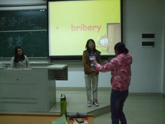 为了促进班级学风建设,营造良好的班级学习氛围,外国语学院09级英语一班于2011年12月19日在文1-105举办了班级团日活动——英语词汇竞赛。