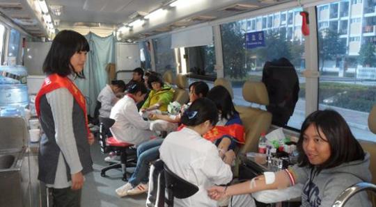 红十字会主办,管理学院和外国语学院红十字会承办的无偿献血活动在一区广场举行。