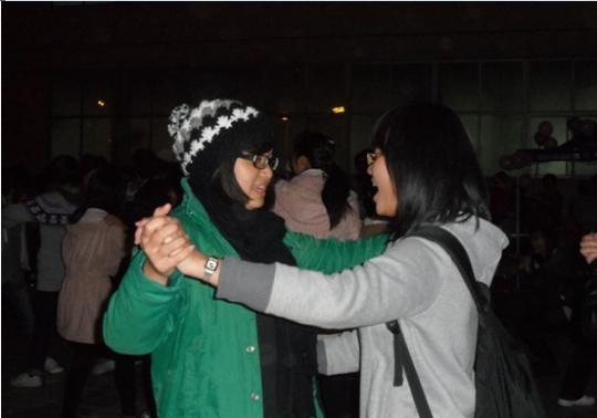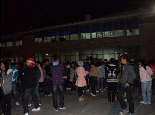 在平安夜来临之际,外国语学院文化部、德国印象协会携手飞扬舞协会联合举办“以舞会友,共度圣诞”大型舞会。舞会于24日晚上19时在一区青春广场激情上演,现场吸引众多同学前来观看。