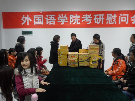 这次的慰问会在备考的关键时刻为考生们送上关心,鼓舞了考生们的士气,同时也体现了外院对考研学生的重视与支持,展现了外院的人文精神,树立了外院的良好形象。