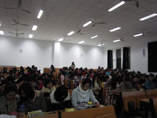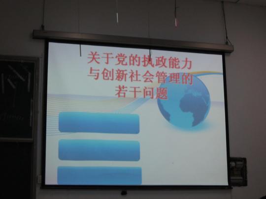 党课开始后,同学们有序就坐,并以热烈的掌声表示了对陈爱玉老师的欢迎与尊重,然后陈爱玉老师为所有参与第三次党课学习的同学进行了题为《党的组织原则与纪律》的精彩讲授。首先她阐述了高度重视加强党的执政能力建设的重要性和必要性,继而列举前苏联为例子,根据历史史实总结经验教训,进一步强调党的执政能力先进性建设任务是十分必要且繁重的。接着,陈老师向同学们提出关于“党积极探索社会建设发展规律”和“大力加强和创新社会管理”的两个问题,并以我们身边的实例为切入口,贴近生活、易于理解,讲课风格质朴充实、声情并茂,赢得了在场同学们不止一次的强烈反响。