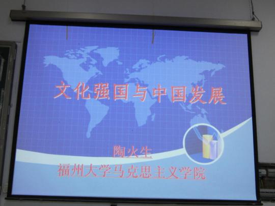 马克思主义学院黄火生老师在文4—101向外国语学院和建筑学院的入党积极分子们讲述了以“文化强国和中国发展”为主题的生动一课。学生都提前来到教室并精神饱满地期待着讲座的开始。