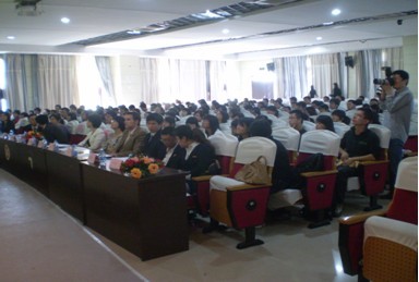 见习协会和外国语学院学术部联合主办的戴姆勒宣讲会在素质拓展中心学术报告厅隆重举行。出席本次宣讲会的校方嘉宾有外国语学院书记倪朝兴、英语系笔译硕士黄亚君、英语系口译硕士章芸、机械工程及自动化学院院长姚立纲、车辆工程系主任张卫波、学生工作部、毕业生就业指导中心主任叶青、老师黄贵闽。此外,福建戴姆勒汽车工业有限公司的代表们也莅临现场。