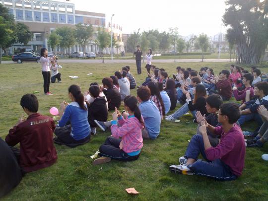 此次“感恩”主题班会包括感恩自己、感恩友谊、感恩父母三个环节,活动采取游戏与节目表演相穿插的方式,让同学们在比较放松的氛围下感受到感恩的重要性。感恩自己的环节中,同学们通过“找零钱”和日语一班的同学演唱日语歌曲“谢谢”的旋律中,进一步感受到自我的重要性。“情有千千结”的游戏和材料班诙谐幽默的话剧表演“项羽自刎”则让同学们在愉快的游戏氛围中,学会了感恩友谊。在“残忍”的游戏“十留二”环节和“冥想一分钟”中,同学们心灵深受触动,深刻意识到了父母亲的伟大与珍贵。