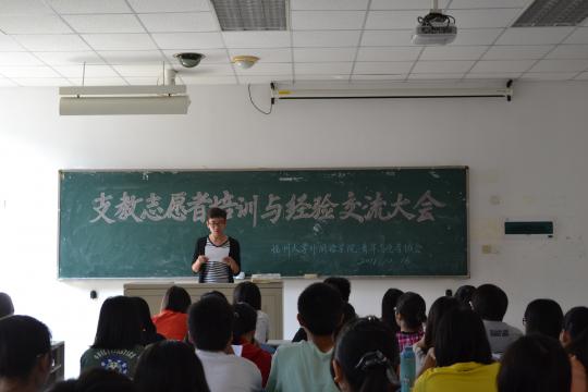 外国语学院青年志愿者协会主办的支教志愿者培训与经验交流大会在西2-306举行,参加此次会议的有美歧小学、余盛小学的新老支教志愿者。