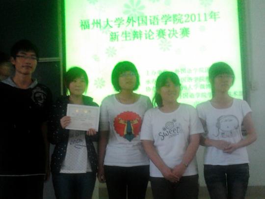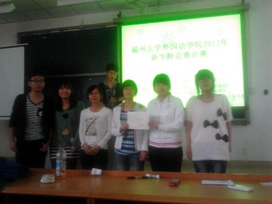 10月15日早上8:30,一场由外国语学院团委主办的,别开生面的新生辩论赛在文2-104教室举行。此次比赛的主题是“长寿是福非福”,参赛的队伍分别是外国语学院11级日语一班,日语二班,英语一班和德语一班。比赛开始前,参赛选手们做出自我介绍,并相互击掌,相互鼓励,向观众们展现他们饱满的精神状态和良好的比赛素质。此外,本次比赛打破了以往辩论赛的常规,与微博协会合作,引入了微博互动机制,首次让观众体会到了网络互动的乐趣。此后,比赛正式开始。