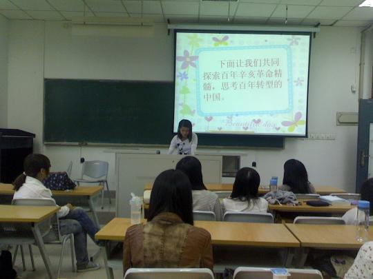 在本次“百年烽火 铭记辛亥”的主题团日活动中,同学们皆积极参与。我们重温了100年前唤起国民爱国热情的辛亥革命,让我们铭记历史,缅怀先烈,增强了团员的爱国热情和社会责任感。同时,在对中国百年的思考中,我们明白了作为当代大学生,我们是是祖国社会主义现代化建设的生力军,是祖国的未来与希望,应肩负起复兴中华民族的重任,任重道远且义不容辞。