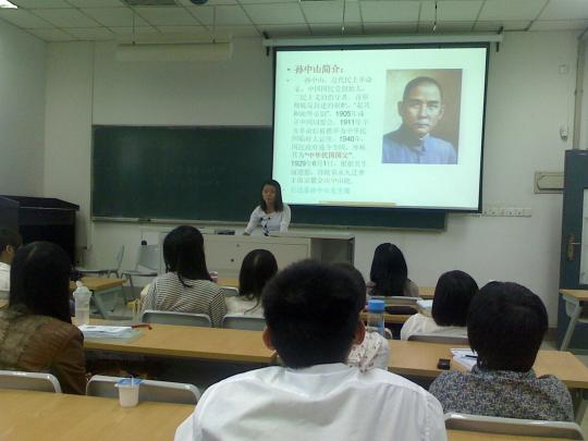 2、紧接着进行第二个活动流程,通过简单的PPT向同学们展示了关于辛亥革命的大事记,其中包括一系列辛亥革命爆发的重要任务和事件。一张纸PPT图文并茂地展示出那个特殊年代的特殊人事物,例如孙中山、红楼等。此外,此流程中存在一特色之处就是向同学们展示了西方报刊中的辛亥革命,由此了解西方国家对辛亥革命的看法。