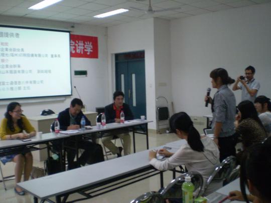 座谈会伊始,主持人金玉花老师简洁明了地介绍了三位来宾,并鼓励在场同学把握此次机会,勇敢发问。接着,三位日本企业的精英进行了自我介绍并对日本企业的基本现状进行了粗略描述。随后,在场的日语系同学均争先恐后、连连发问,提出了许多心中困扰已久的问题。