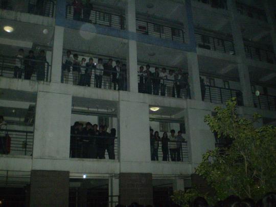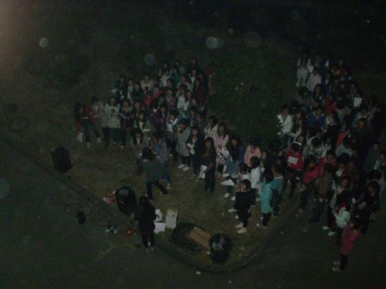 晚上9时许,在院两委办的组织下,大一大二的女生聚集于男生宿舍楼4号楼楼下。由部分女生摆成的心型,在灯光的衬托下显得温暖感人。外院男生在女生们的呐喊祝福下走出宿舍,向楼下的女生们道出一声声的“谢谢”。庆祝活动以女生合唱的 《情非得已》拉开序幕,歌声响彻了一区的天空。紧接着《暖暖》的音乐响起,女生们伴着音乐,唱出了心中的无限祝福。两首歌过后,现场开始进行猜歌名的趣味游戏。男生们争先进行抢答,赢得了一份份女生精心准备的水果沙拉。其后,惊险的传气球互动游戏将活动推向了高潮。活跃气氛的报纸小游戏让现场沉浸在一片欢声笑语中,为活动增添了几分特色。晚上10时左右,女生们为男生献上最后一首歌,男生节庆祝活动至此画上了圆满的句号。